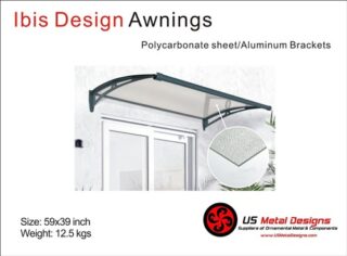 Ibis Polycarbonate awning with a Rain-drop sheet and Black color arm brackets. 3.6mm sheet. Size 59×40″
