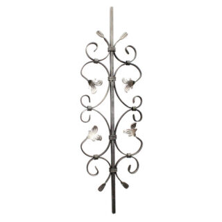 Forged Steel Baluster/Picket with Scroll and Leaf Elements. This hand assembled picket design is held in place with precision welding and roman collar bandings to provide that custom appeal.