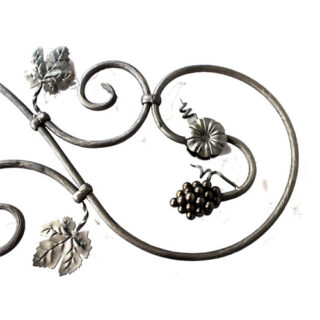 Forged Steel Grape Scroll Panel with Grape Bunch, Leaves, Tendrils and Flower Rosettes. This Scroll Panel has a Vine Textured Appearance to Provide the Authentic Feel.