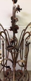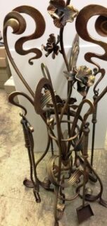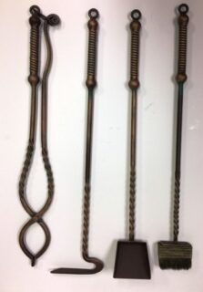 This hand crafted tool set was specifically designed for a large fireplace and requires plenty of room to to display the beauty of the set. Space is needed to highlight the beautifully crafted flowers within the holder, to highlight the leaf elements which encompasses the base of the unit as well as the long curves where each of the four tools can be elegantly stored.