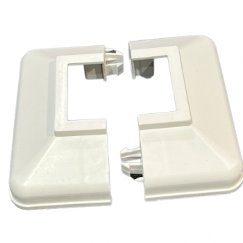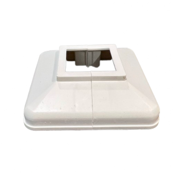 - Two-piece white plastic post base cover.