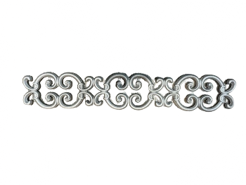 Die Cast Aluminum Railing or Door Frieze-No Steel Weld Tabs. This Double C-Scroll Design is double faced and works perfectly on any railing, fence or door as a decorative element. There are no steel weld tabs on this door frieze.