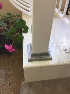 This base cover offers the ability to hide unsightly concrete/mortar pours used to set the post or hides the unsightly anchors used to connect a post flange with the flooring. Because it is a split design, it can be installed after affixing the post into its final position.