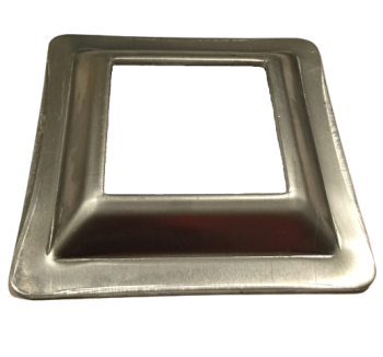 These flange type base covers are perfect for attaching to 1-1/2″ square aluminum posts to facilitate easy anchoring to an array of flooring types. Simply drill holes on these flanges, attach to post via welding. After painting or powder coating use the appropriate fastener and attach to the floor surface as needed.