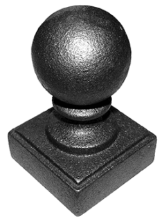 2.5 inch Cast Iron Ball Cap- Fits over 2.5 inch square posts. Perfect post cap for railings, gate posts and fences.