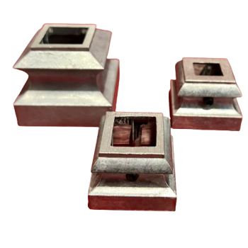 This Flat Aluminum Shoe for 1/2″ Square Bar sits on Level Base is used as the decorative cover element for aluminum baluster installations and is designed to hide and minimize gaps as well as imperfections during installation. This shoe was designed to fit aluminum or steel square bars and allows a little extra spaces as to reduce scraping the picket while installing.